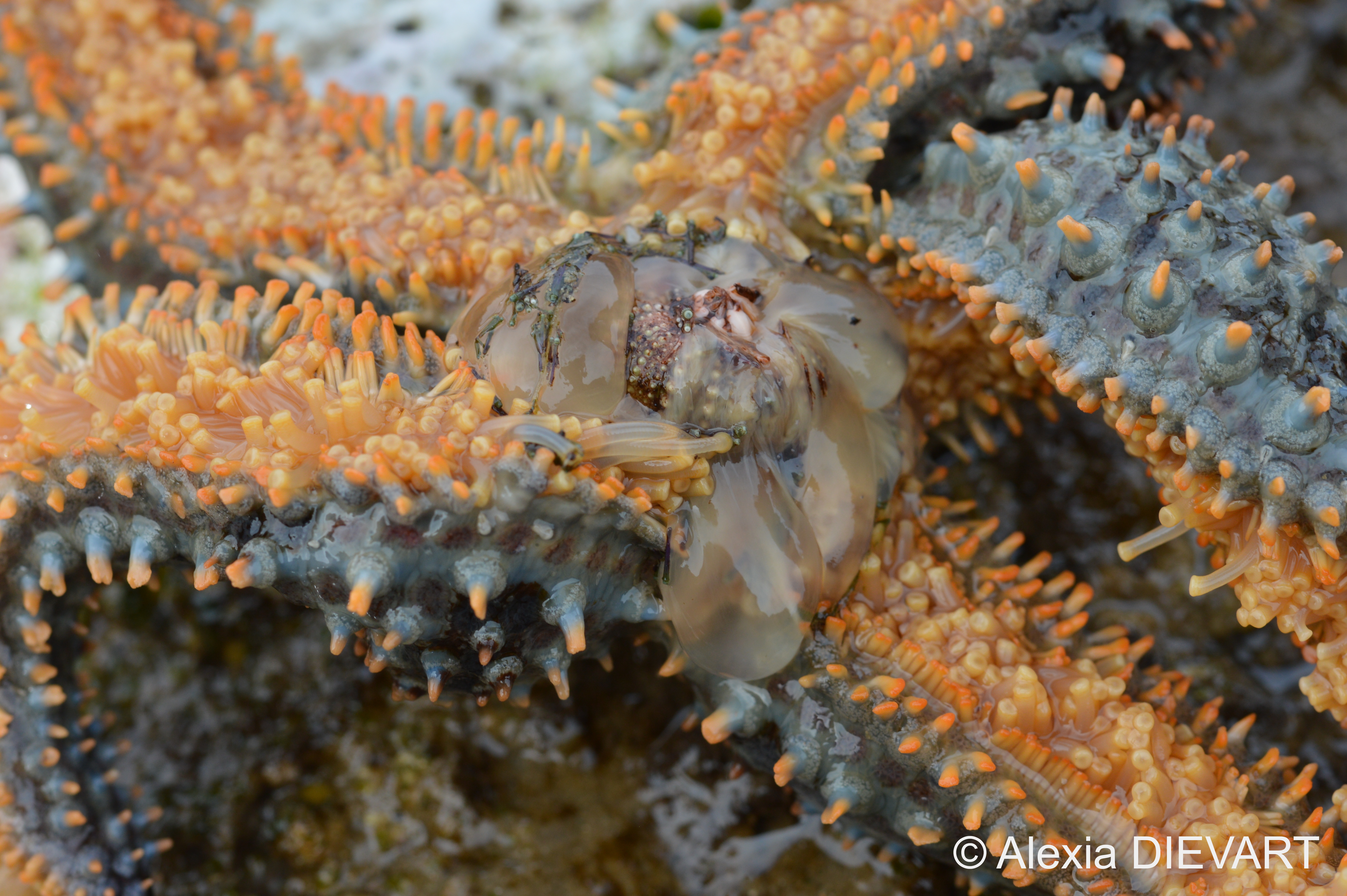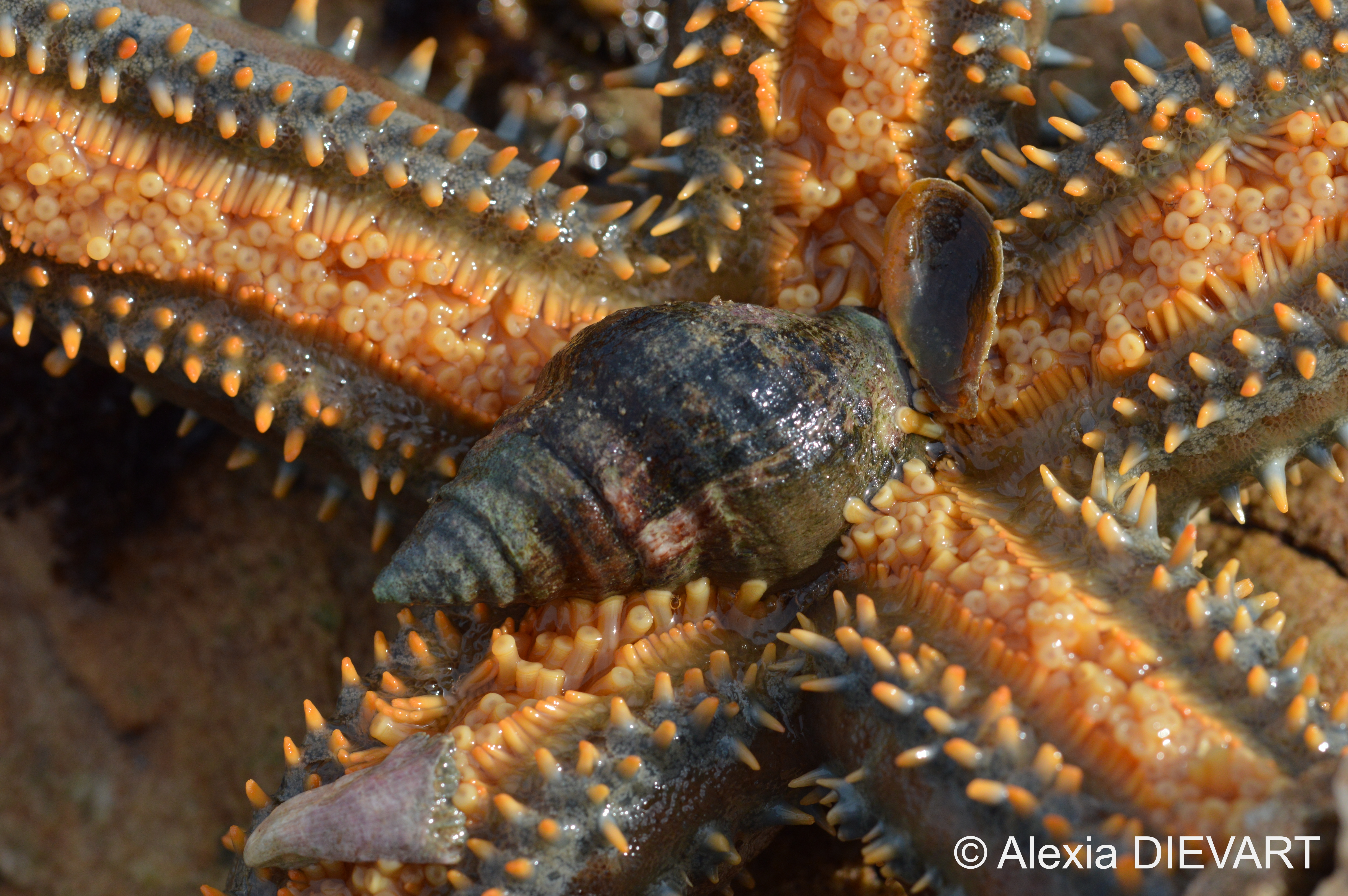 Marthasterias sp. is a common, generalist predator on the rocky shores, where it is considered an opportunistic and voracious feeder. By definition, a generalist predator may ‘switch’ between several prey species, depending on which prey is currently the most abundant. It can even mistake a rock for a prey !
