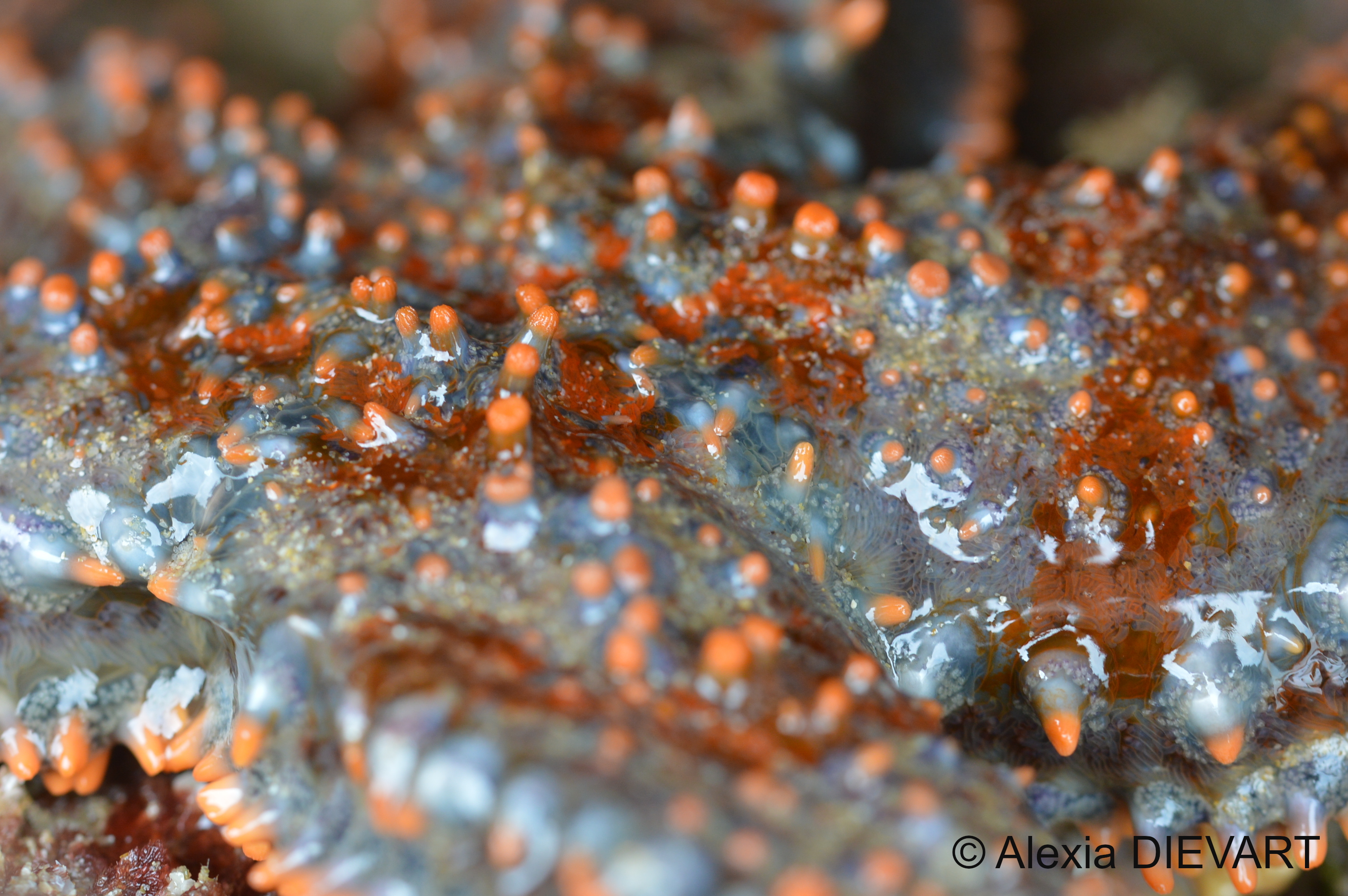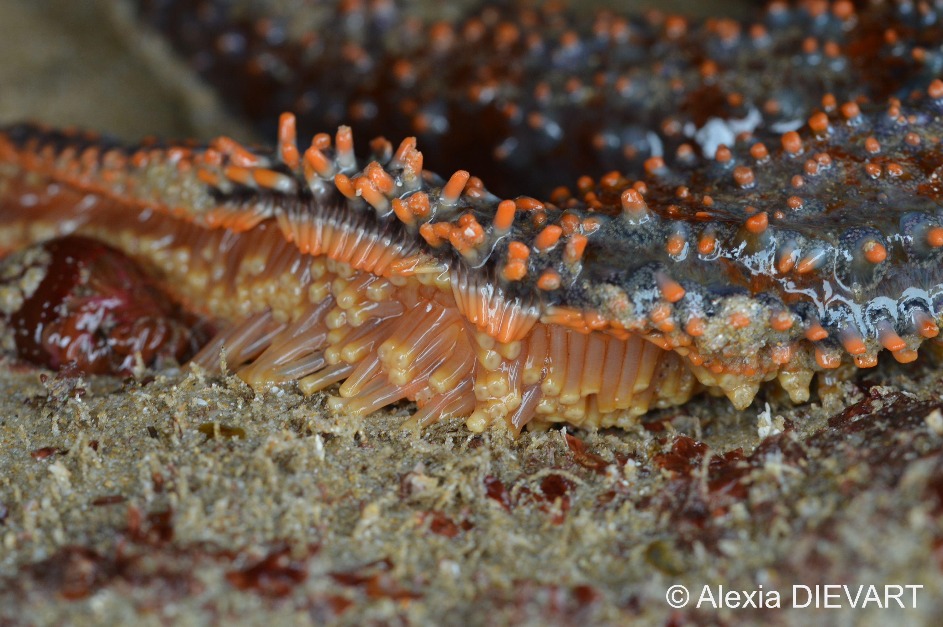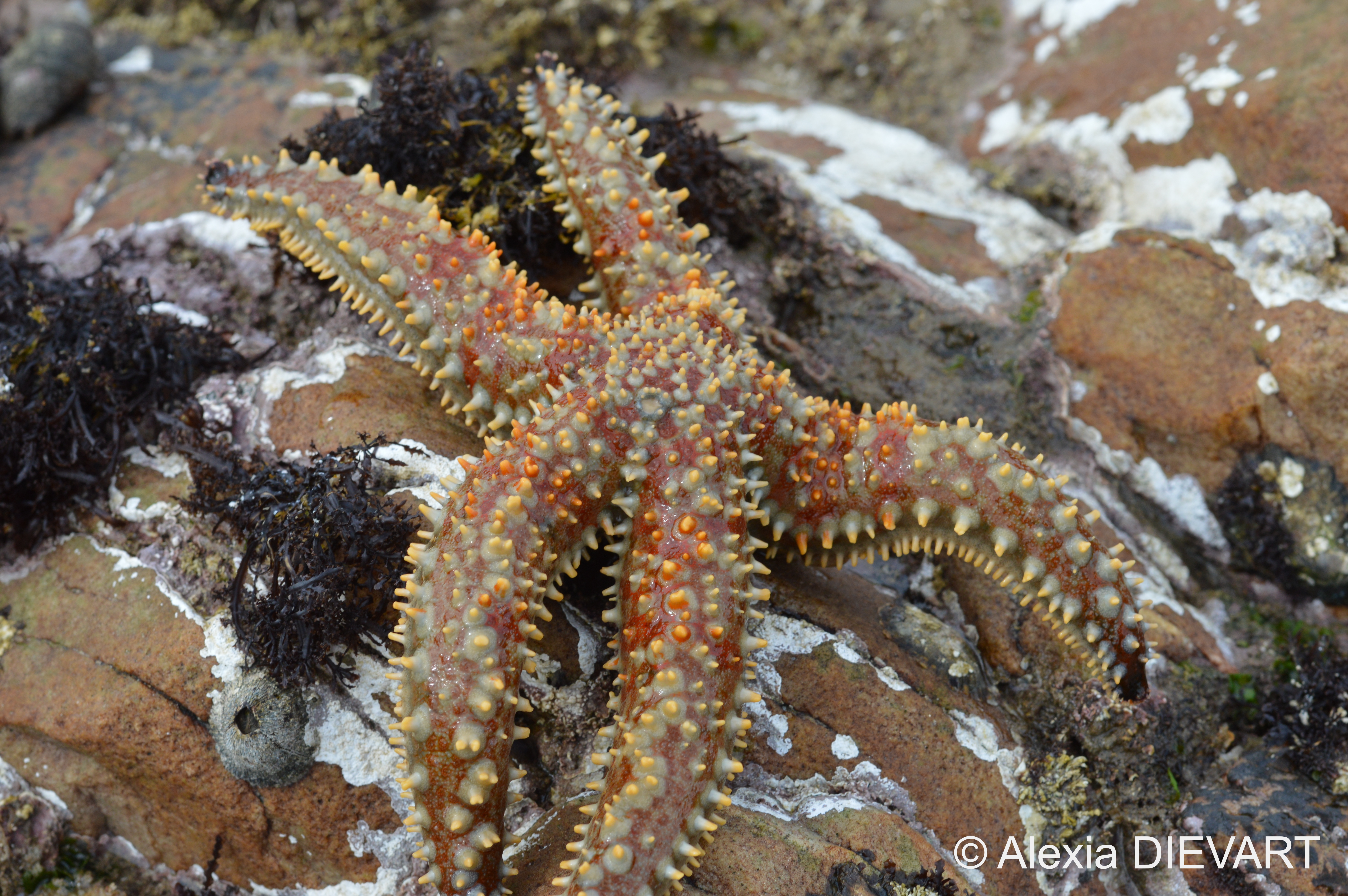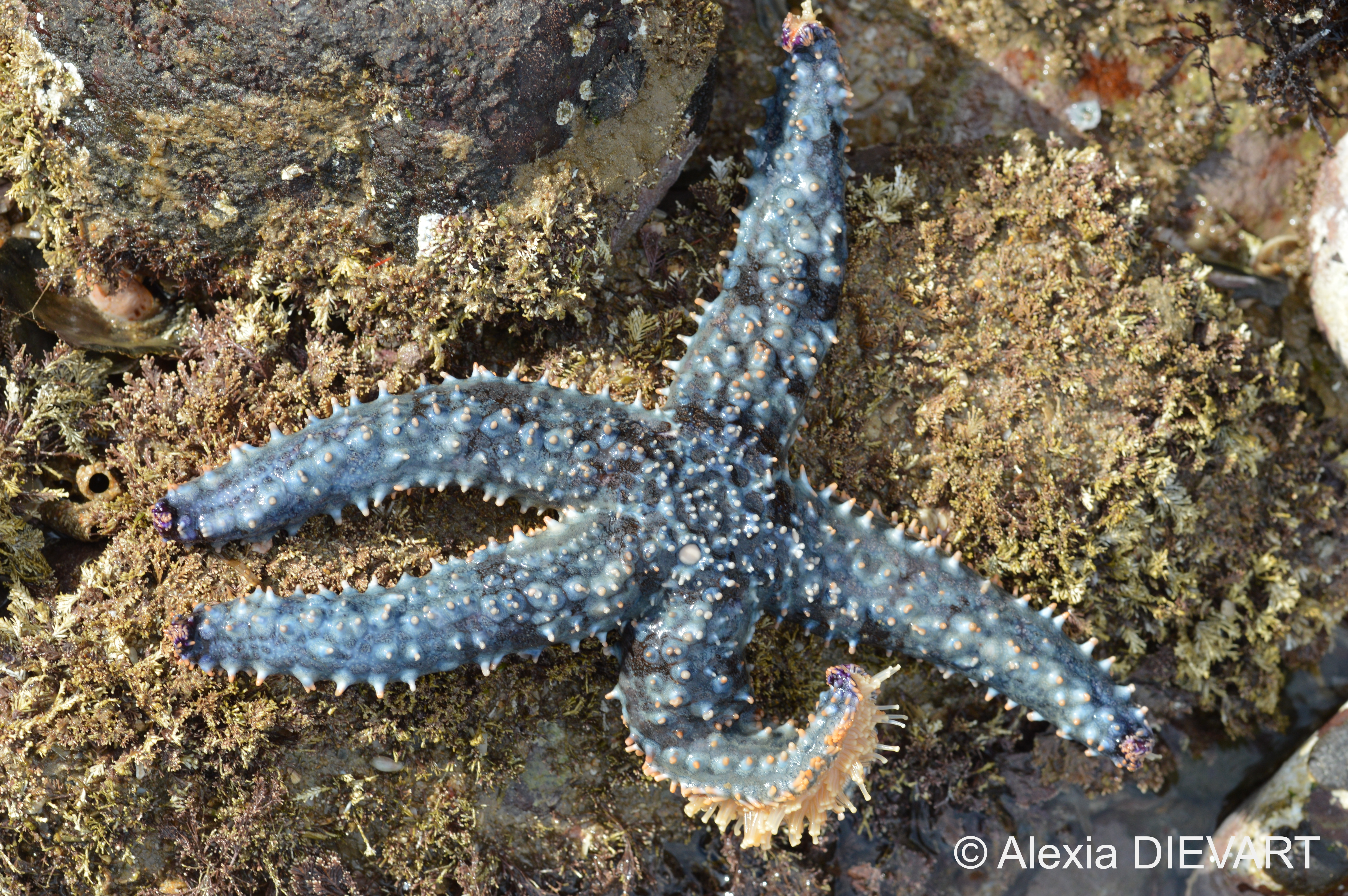 Marthasterias africana displays a high level of color variation on the South African rocky shores, with about three ‘dominant’ color on each individual : the color of the body surface, the color of the pedicellaria, and the color of the spines.