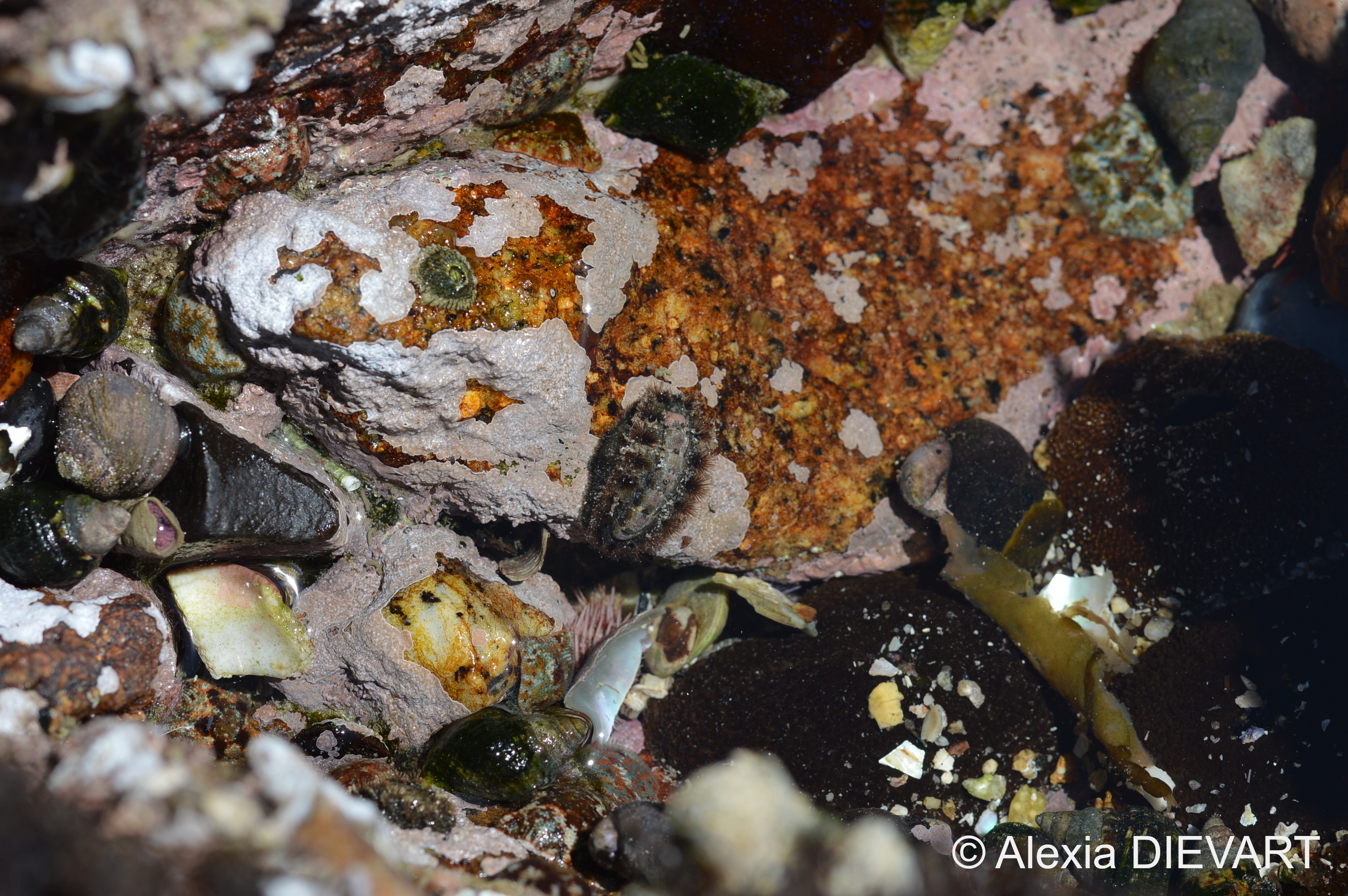 Unusual in that it is abundant on exposed rock surfaces high in the intertidal.