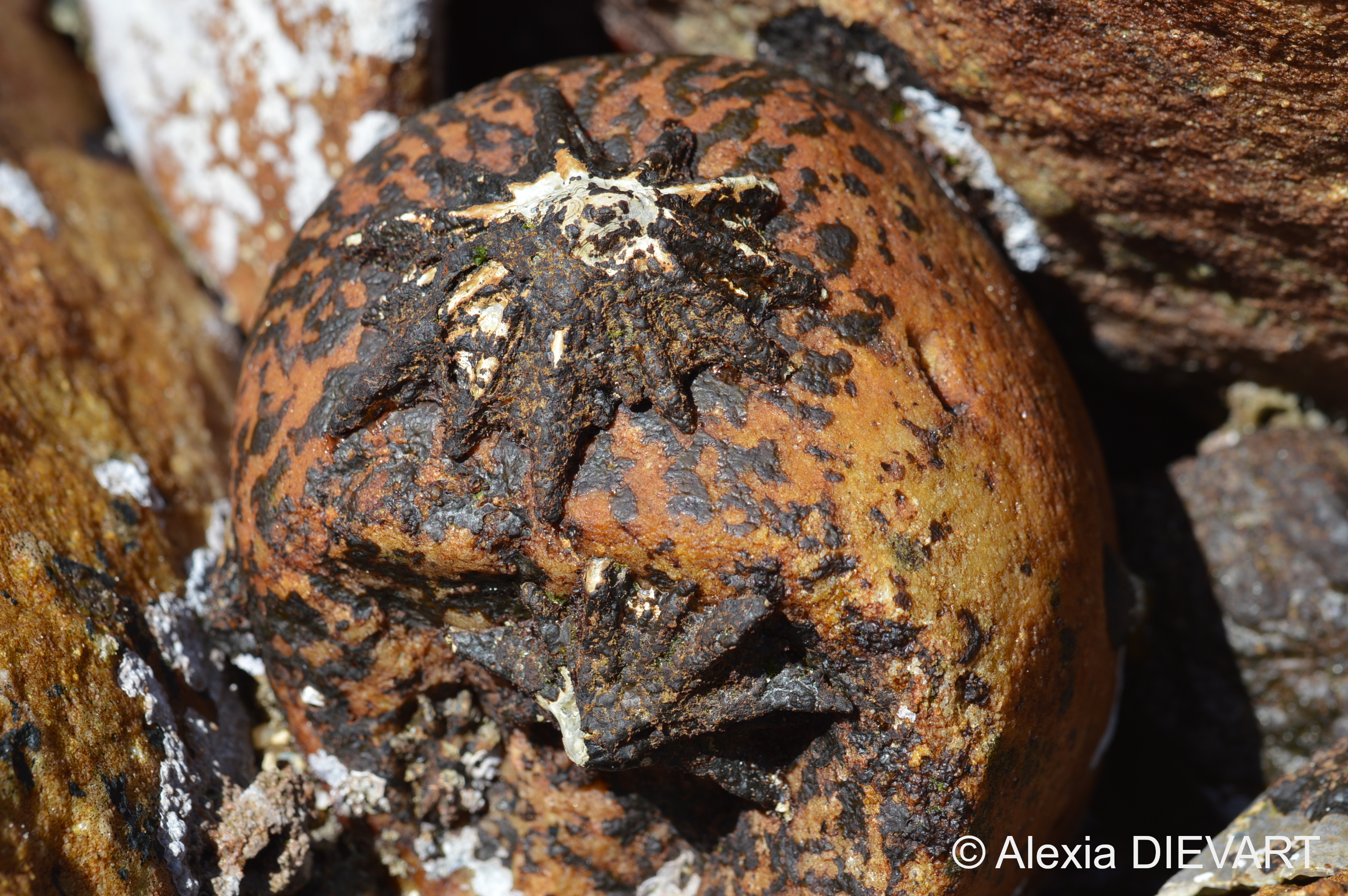 Scutellastra longicosta is a territorial limpet that occupies a permanent position on the rocky shores and cultivates the brown alga Ralfsia verrucosa in a ‘garden’ which it defends from other herbivores (Heidt et al., 2013).