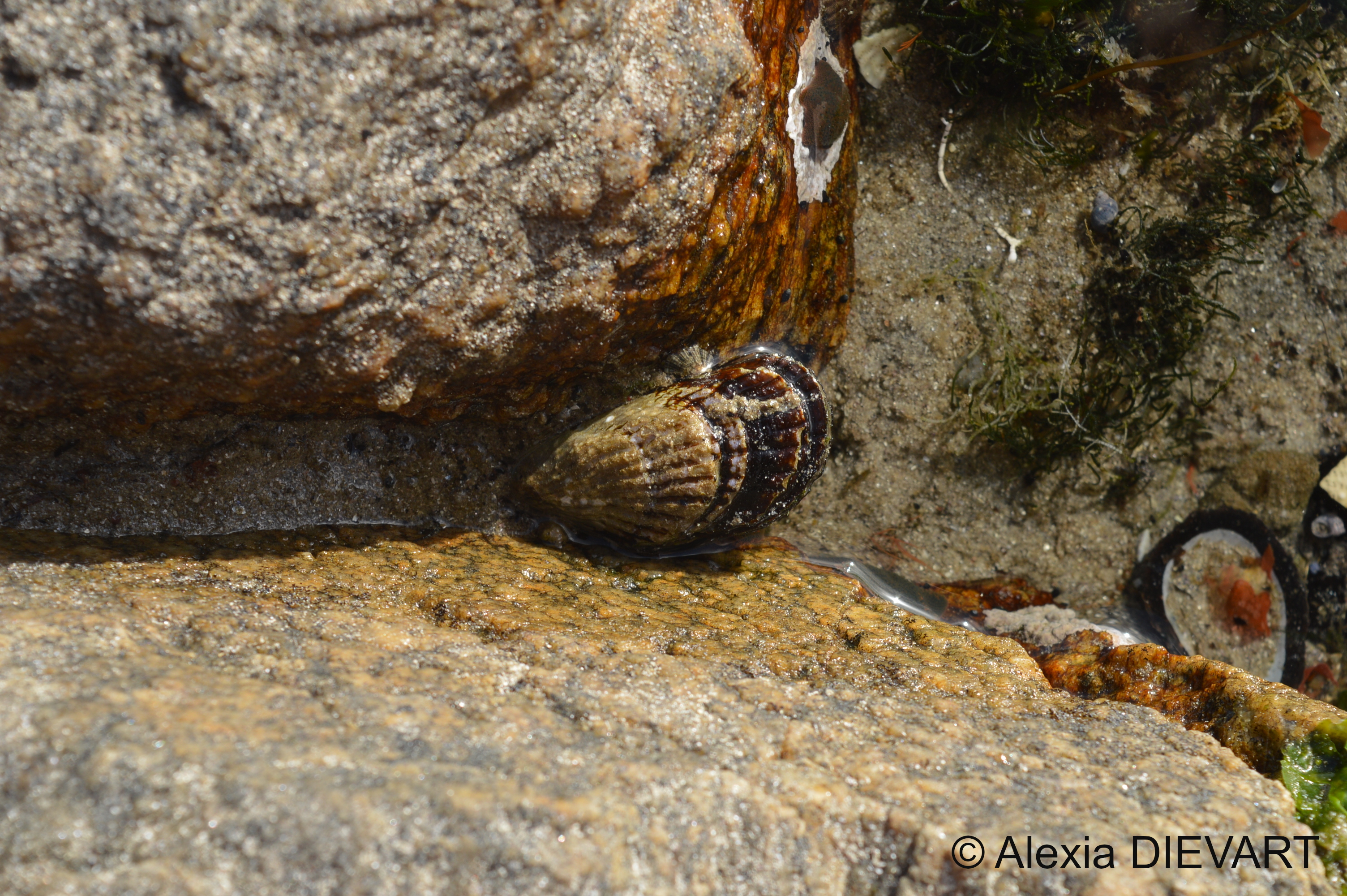 Easily recognised by the strong wavy ridges running the length of the shell. Shell brown in juvenile, but becomes blue-black in larger individuals. Eroded areas are white.