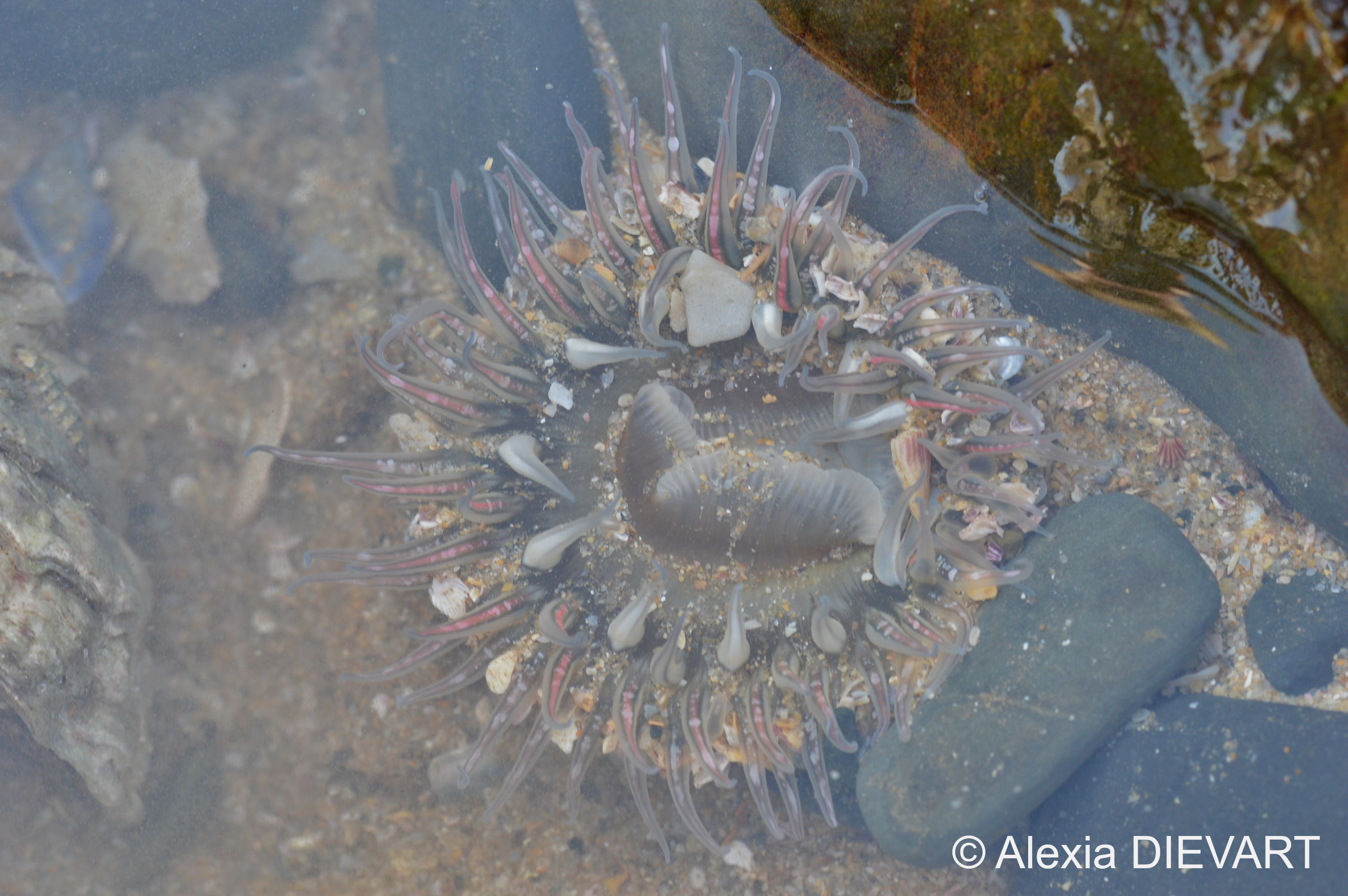 This specific diet composition is easily explained by the morphology and the habitat occupied by A. michaelseni. Indeed, being large increases the chances of capturing large prey, such as barnacle and bivalves. Moreover, A. michaelseni anemones are often found partially buried in sandy crevices with only the tentacles exposed – as you can observe in the photographs presented above and below.