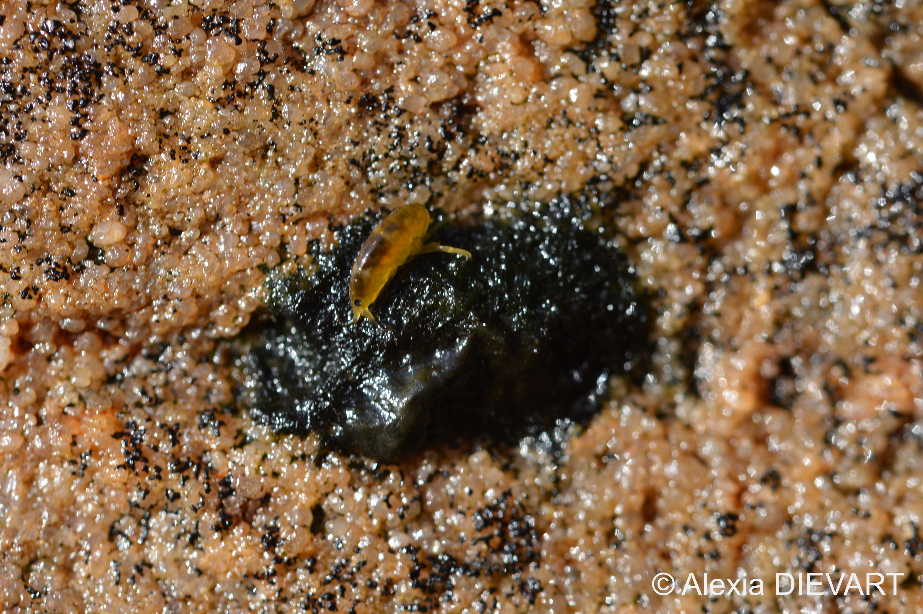 A familiar, air-breathing scavenger found in vast numbers at or above the drift-line of sandy beaches. Often concealed under drift material, exploding into activity if disturbed. At night, it hops clumsily about the beach in search of freshly deposited seaweed. Shortly before dawn, it returns up the beach and burrows into the dry sand.