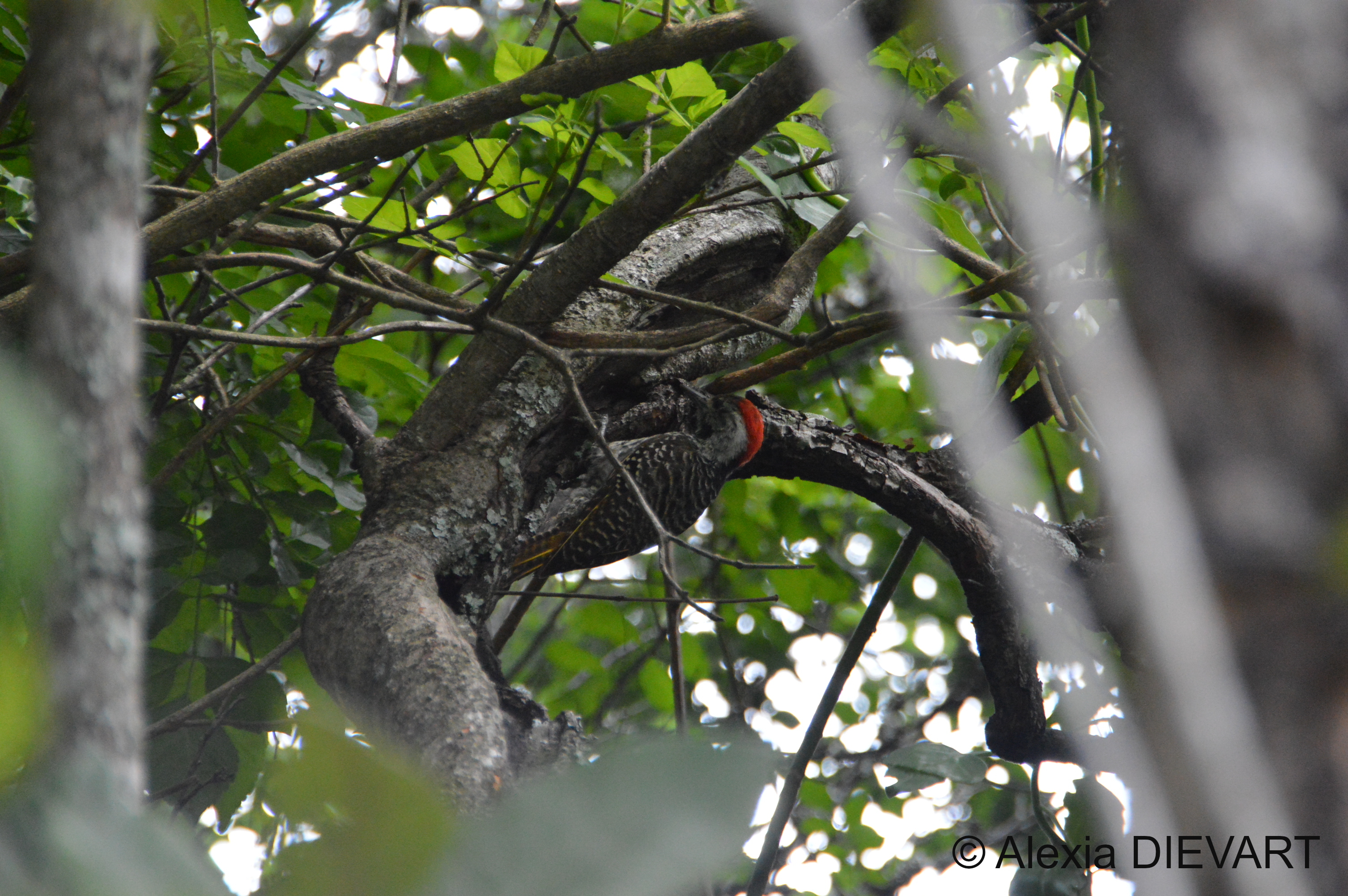 A small woodpecker with a streaked breast and belly. Back is boldly barred in the South, while becoming plainer in the North-East. Both sexes have a plain, whitish face with a bold, black moustachial stripe. Slightly smaller than the green-backed woodpecker. Both sexes are distinguished by barred (not spotted) upperparts, streaked (not spotted) underparts, and the presence of bold, dark malar stripe.